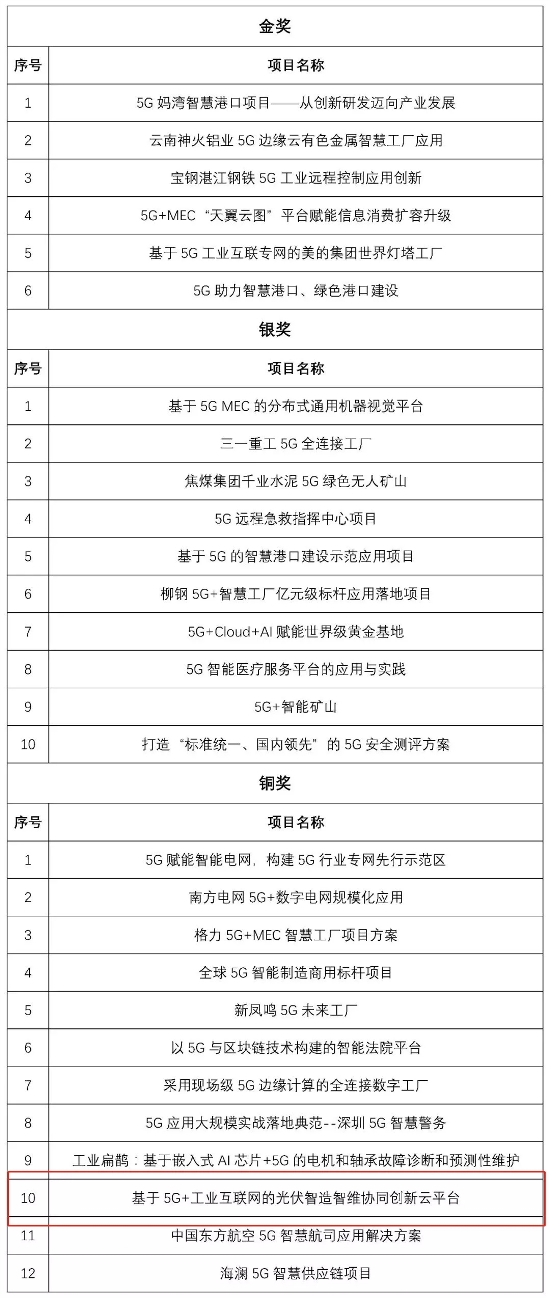 ? ? ? ?我國5G應用仍處于導入期,在行業(yè)領域、企業(yè)規(guī)模及地域分布等方面存在差異,應用的成熟度也呈現(xiàn)差異化特點,為加快已成熟5G應用商用落地及規(guī)模復制,本屆大賽特別設立標桿賽。標桿賽由工業(yè)和信息化部主辦,中國信息通信研究院(以下簡稱“中國信通院”)聯(lián)合5G應用產業(yè)方陣? IMT-2020(5G)推進組、中國通信標準化協(xié)會以及金磚國家未來網絡研究院中國分院共同承辦,旨在推進已成熟的5G應用持續(xù)創(chuàng)新與規(guī)模復制,從而樹立5G應用行業(yè)標桿,擴大我國5G“新基建”的賦能效應和帶動作用。 ? ? 未來,鎮(zhèn)江公司將繼續(xù)遵循數(shù)字化、信息化、智能化的發(fā)展理念,積極貫徹落實太陽能公司第二次黨代會精神,全力落實“三新”要求,推進“數(shù)字化中節(jié)能”戰(zhàn)略目標落地,全力打造高效光伏電池與組件智能制造數(shù)字化云平臺標桿工廠,為更好地實現(xiàn)“3060”雙碳目標貢獻力量。