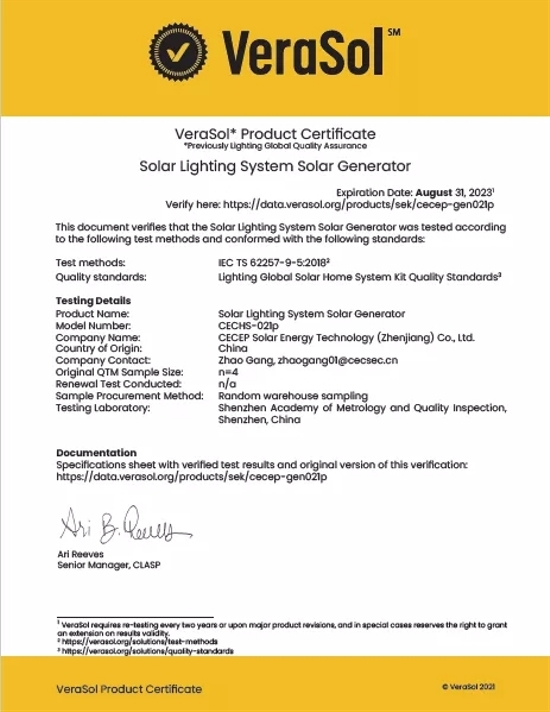 ? ? 鎮(zhèn)江公司自主研發(fā)太陽能家用離網(wǎng)系統(tǒng)獲得“點(diǎn)亮全球”證書 ? ? 全力攻關(guān), ? ? 順利通過點(diǎn)亮全球認(rèn)證 ? ? 早在2019年10月,鎮(zhèn)江公司技術(shù)研發(fā)人員就開始著手進(jìn)行非洲太陽能離網(wǎng)系統(tǒng)的市場調(diào)研。2020年2月根據(jù)調(diào)研數(shù)據(jù)進(jìn)行產(chǎn)品設(shè)計(jì),確定了“CECHES021P” 和“CECHES026”2款產(chǎn)品,系列產(chǎn)品參數(shù)后就開始緊鑼密鼓地進(jìn)入實(shí)體開發(fā)和paygo支付系統(tǒng)軟件的調(diào)試階段。研發(fā)人員在鉆研技術(shù)上的突破同時(shí),也在進(jìn)行點(diǎn)亮全球項(xiàng)目的認(rèn)證流程,雙管齊下。2020年12月鎮(zhèn)江公司將已完成的200套離網(wǎng)產(chǎn)品,送往深圳計(jì)量院,進(jìn)行IEC 62257-9-5測試。在國內(nèi)外疫情的多重影響下,2021年8月,研發(fā)人員克服重重困難,完成了一系列嚴(yán)格測試,取得深圳計(jì)量院出具的符合國際IEC標(biāo)準(zhǔn)的產(chǎn)品測試報(bào)告,通過“點(diǎn)亮全球”認(rèn)證。 ? ? 點(diǎn)亮全球認(rèn)證, ? ? 為產(chǎn)品品質(zhì)背書 “Lighting Global點(diǎn)亮全球認(rèn)證”高標(biāo)準(zhǔn)和嚴(yán)要求、含金量高,確保認(rèn)證產(chǎn)品能滿足全球缺電國家對太陽能照明的高要求。成功通過“點(diǎn)亮全球”認(rèn)證,代表著我們研發(fā)的太陽能家用離網(wǎng)系統(tǒng)能從各方面可以更好地滿足非洲國家的用電需求,為當(dāng)?shù)赜脩魩ベ|(zhì)量更加穩(wěn)定可靠的太陽能照明及相關(guān)太陽能應(yīng)用產(chǎn)品。