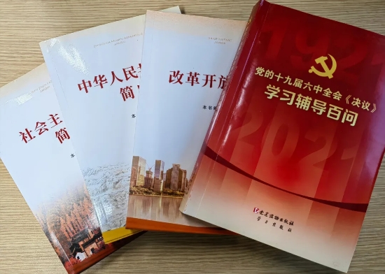 ? ? 與黨史學(xué)習(xí)教育相結(jié)合 ? ? 把學(xué)習(xí)貫徹黨的十九屆六中全會精神與黨史學(xué)習(xí)教育緊密結(jié)合,結(jié)合上級黨委部署要求,發(fā)放《社會主義發(fā)展簡史》《中華人民共和國簡史》《改革開放簡史》《黨的十九屆六中全會〈決議〉學(xué)習(xí)輔導(dǎo)百問》等書籍,組織全體黨員干部職工群眾認真學(xué)習(xí),深入理解和把握黨的“四個歷史時期”的偉大成就、“十個堅持”的歷史經(jīng)驗、“十個明確”的思想精華等,全面領(lǐng)會和體悟全會精神的核心要義。