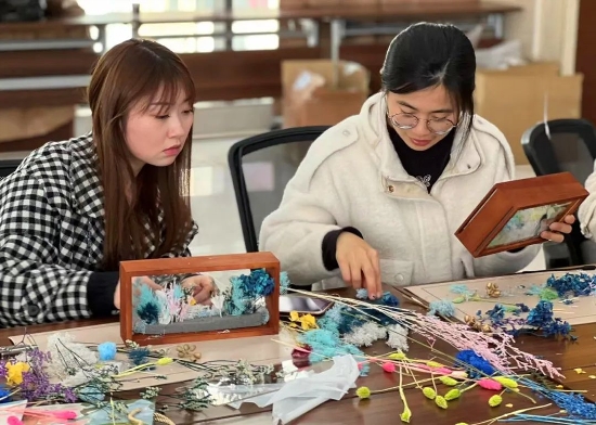 ? 活動現(xiàn)場,大家參照著老師的樣品打出樣板,?并利用各種素材進(jìn)行搭配制作,一幅幅美麗的相框漸漸成型。在一點(diǎn)一滴制作中,滲透著自己的心意與格調(diào),沉浸在花木之樂中,享受詩情花意。在迷人的鮮花和色彩的烘托下,一個個復(fù)古的的相框永生花作品陸續(xù)誕生。這一場永生花DIY,定格了花漾時光,更制造了一份美好的回憶。