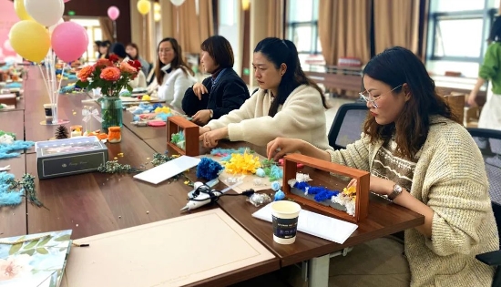 ? 3月8日,鎮(zhèn)江公司組織開展了以“巾幗風(fēng)采競芳菲,鏗鏘玫瑰展風(fēng)華”為主題的永生花相框制作活動,小伙伴們紛紛躍躍欲試變身“花藝大師”,制作只屬于自己的永生花。