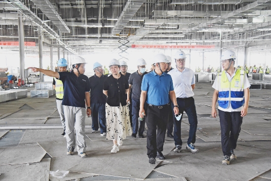 ? ? ? 楊忠緒一行首先聽取了鎮(zhèn)江公司2022年上半年安健環(huán)工作及1.5GW高效太陽能電池組件智能制造項目進度專題匯報,詳細了解了企業(yè)半年績效評定、職業(yè)衛(wèi)生、清潔生產(chǎn)與能耗管理等方面工作開展情況,并冒著高溫酷暑,深入1.5GW在建項目工地現(xiàn)場,實地調(diào)研了解項目土建進度、機電進度和裝修進度等。