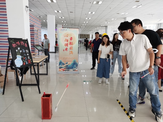 ? ? ? 伴隨著現(xiàn)場愉快的氣氛,月餅也出爐了,大家欣賞著自己親手制作的月餅。整個上午,烘焙間熱鬧非凡,大家共同享受濃情四溢的手作時光。 趣味樂投壺 ? ? ? ?投壺,古代士大夫宴飲時的一種投擲游戲,也是一種禮儀,屬于六藝中的“禮、樂、射、御、書、數(shù)”中的“射”。 ? ? ? 本次活動在公司食堂開展,往來員工皆可自愿參加,公司工會還準(zhǔn)備了小禮品獎勵參與者,在工作之余給員工的生活增加一絲樂趣。