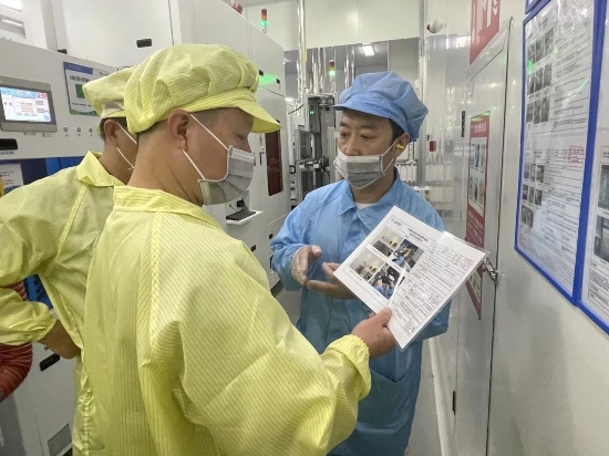 檢查小組深入鎮(zhèn)江公司生產(chǎn)一線,全面查看了特氣間、危險(xiǎn)化學(xué)品庫(kù)、污水站、配電房等安全環(huán)保防護(hù)設(shè)施的設(shè)置及運(yùn)行情況,通過邊看、邊聽、邊問,實(shí)地了解生產(chǎn)工藝流程,認(rèn)真詢問員工對(duì)本崗位安全風(fēng)險(xiǎn)管控措施掌握程度及現(xiàn)場(chǎng)落實(shí)情況。