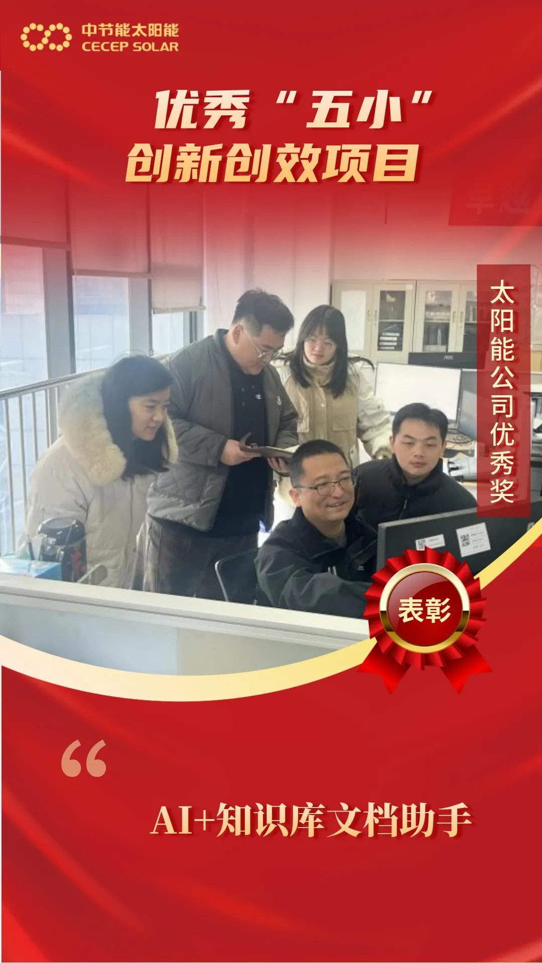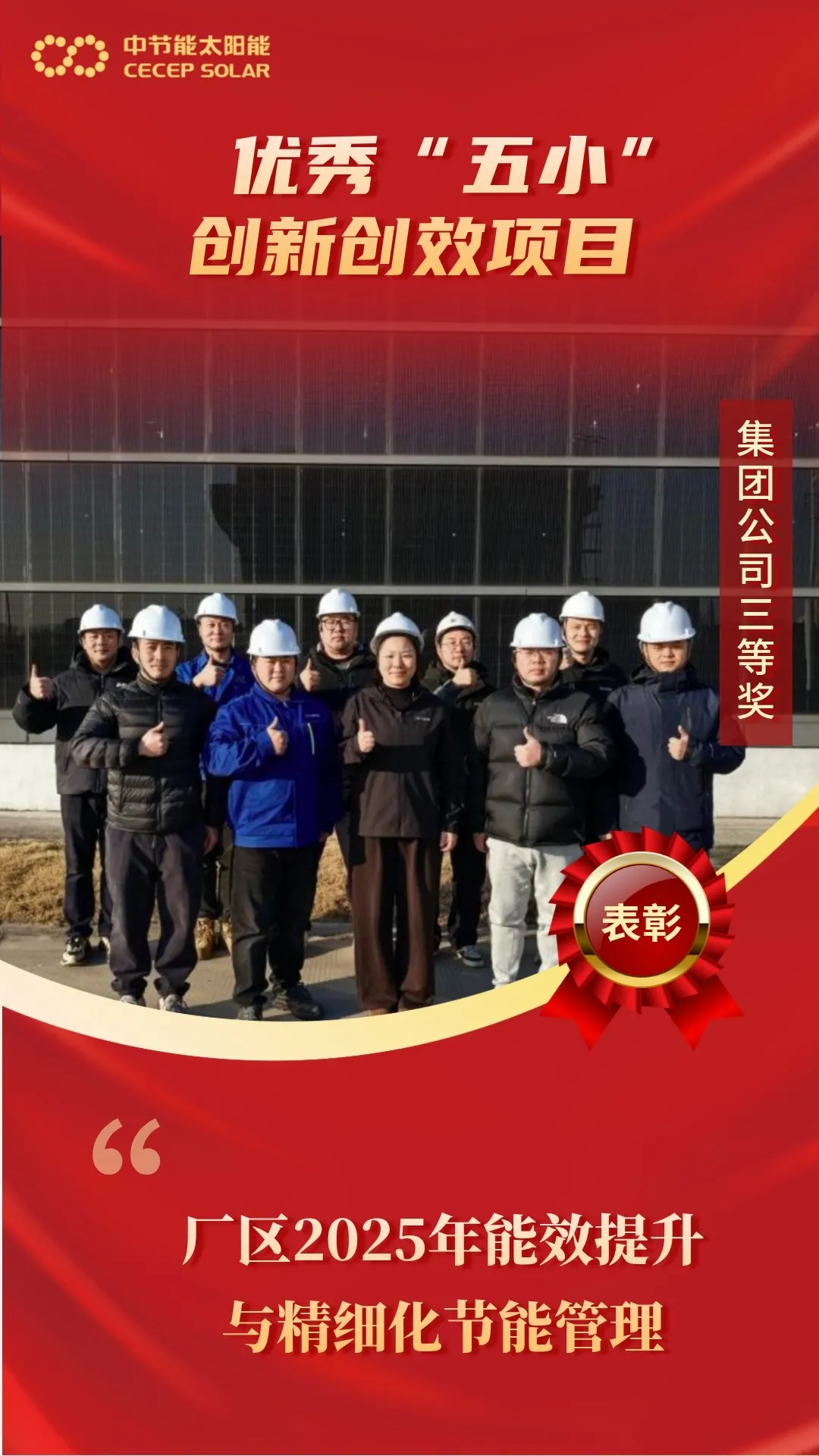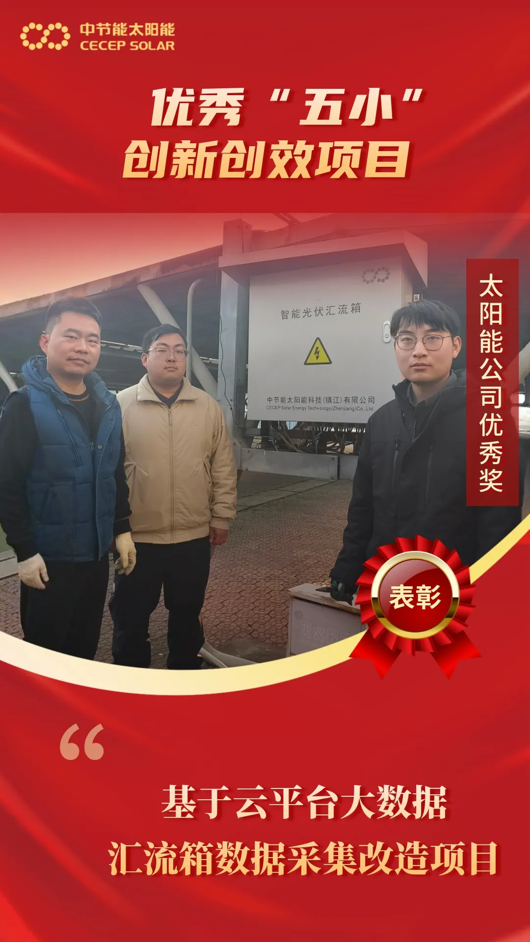 近日,集團公司及太陽能公司印發(fā)《關(guān)于表彰集團公司第七屆優(yōu)秀“五小”創(chuàng)新創(chuàng)效項目的通報》《關(guān)于表彰太陽能公司第七屆優(yōu)秀“五小”創(chuàng)新創(chuàng)效項目的決定》。鎮(zhèn)江公司共有四項創(chuàng)新成果入選,其中《廠區(qū)2025年能效提升與精細化節(jié)能管理》榮獲集團公司三等獎;《基于AI的智能診斷助手在電站運維中的創(chuàng)新應(yīng)用》《基于云平臺大數(shù)據(jù)匯流箱數(shù)據(jù)采集改造項目》《AI+知識庫文檔助手》三項成果榮獲太陽能公司優(yōu)秀獎。這充分體現(xiàn)了鎮(zhèn)江公司堅持創(chuàng)新驅(qū)動、注重技術(shù)實踐取得的顯著成效,展現(xiàn)了團隊在崗位攻堅中的專業(yè)素養(yǎng)與實干作風。 廠區(qū)2025年能效提升與精細化節(jié)能管理