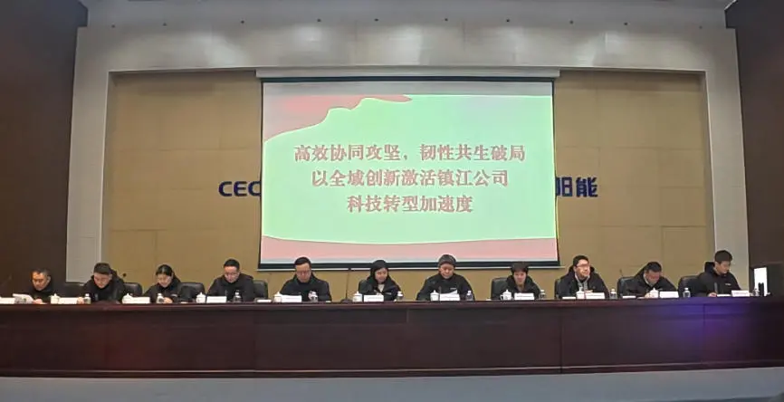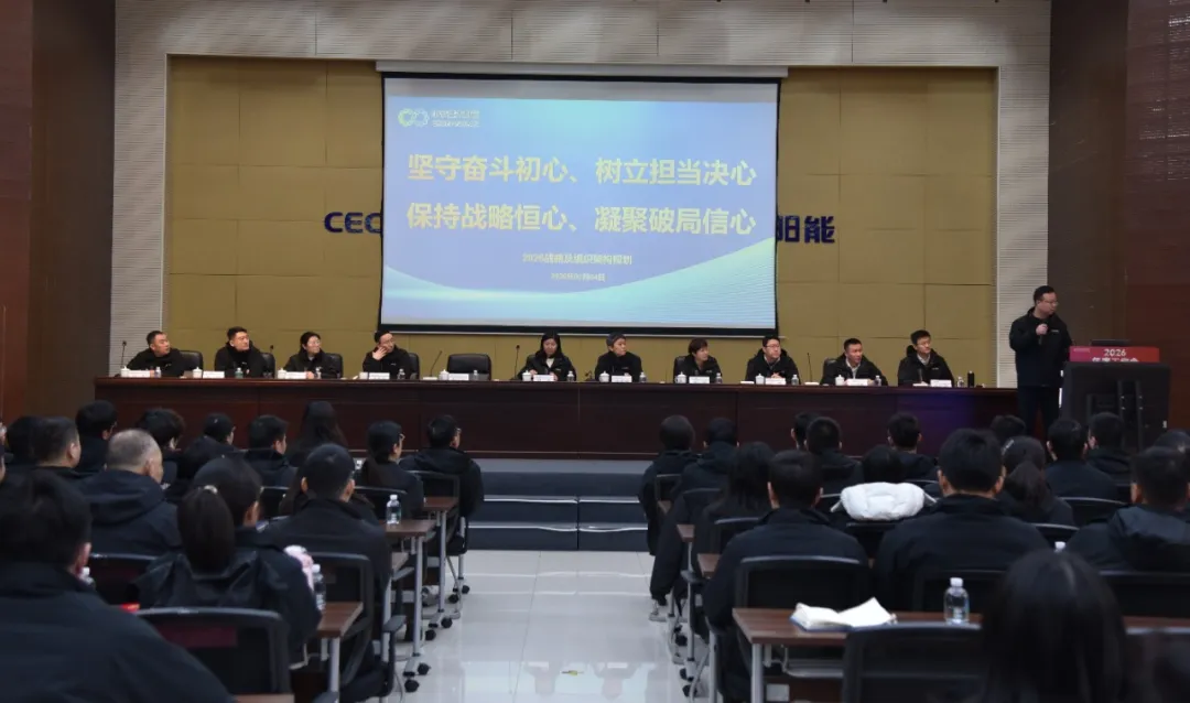 鎮(zhèn)江公司黨總支書記、董事長李菁楠作了題為《高效協(xié)同攻堅,韌性共生破局——以全域創(chuàng)新激活鎮(zhèn)江公司科技轉(zhuǎn)型加速度》的工作報告。報告全面總結(jié)了2025年公司業(yè)績情況,深刻分析了現(xiàn)階段存在的問題和面臨的形勢,并對公司2026年的工作做了具體要求和部署。強調(diào)要以“黨建引領(lǐng)、戰(zhàn)略先行、市場筑基、組織提效、體系貫通”為核心,奮力推進全域創(chuàng)新、韌性生長、共生智慧與價值重構(gòu),全面激活公司科技轉(zhuǎn)型“加速度”,為太陽能公司的進一步穩(wěn)健增長和市值管理做出積極貢獻。 強化黨建引領(lǐng),鞏固政治保障,在凝心鑄魂中加速打造新引擎。 聚焦戰(zhàn)略先行,堅持創(chuàng)新驅(qū)動,在穩(wěn)健經(jīng)營中加速展現(xiàn)新作為。 深耕市場筑基,錨定數(shù)智轉(zhuǎn)型,在提質(zhì)增效中加速開拓新空間。 狠抓組織提效,發(fā)揮協(xié)同效應,在價值創(chuàng)造中加速激發(fā)新活力。 推動體系貫通,構(gòu)筑風險防線,在變革賦能中加速釋放新動能。 錨定方向,明晰執(zhí)行路徑 發(fā)布2026年度戰(zhàn)略及組織架構(gòu)規(guī)劃