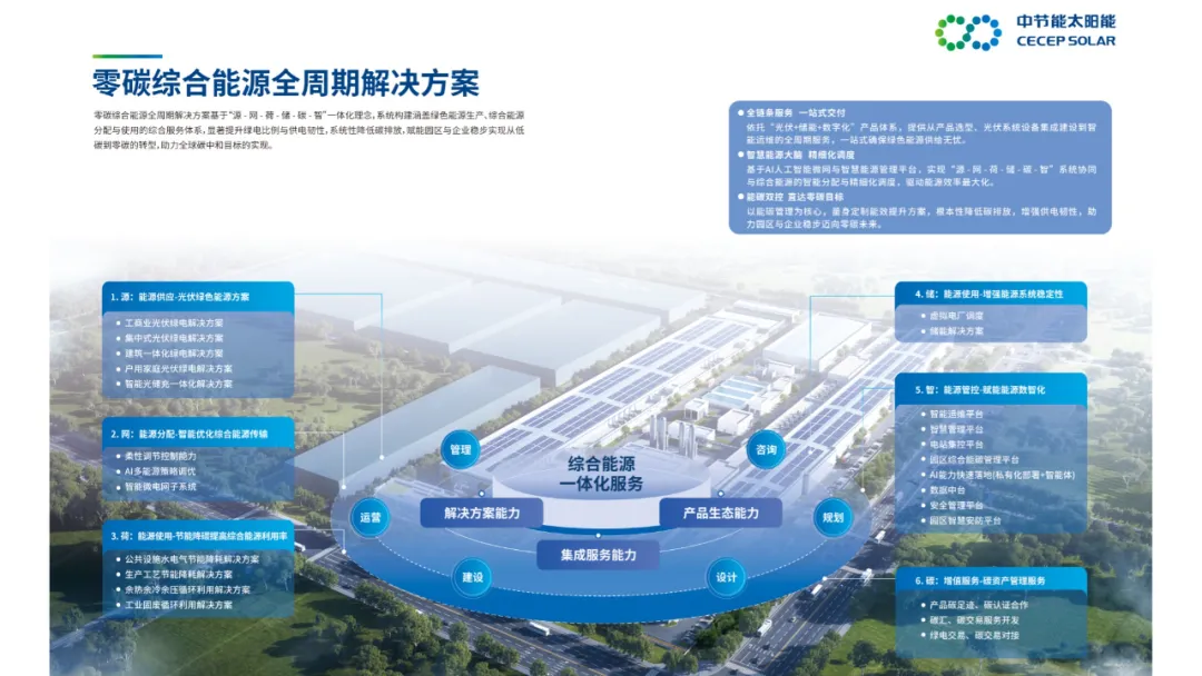 全程陪跑 賦能落地 針對零碳園區(qū)與零碳工廠建設(shè)中普遍存在的周期長、標(biāo)準(zhǔn)缺失、技術(shù)集成難等痛點(diǎn),“零碳綜合能源全周期解決方案”為園區(qū)及工商企事業(yè)單位提供涵蓋咨詢建議、規(guī)劃設(shè)計(jì)、設(shè)備集成與建設(shè)、數(shù)智運(yùn)營、碳資產(chǎn)管理、綠色交易等在內(nèi)的一站式全周期服務(wù)。從前期規(guī)劃介入,圍繞零碳園區(qū)核心指標(biāo)量身定制特色方案,助力項(xiàng)目從藍(lán)圖到落地全程無憂。