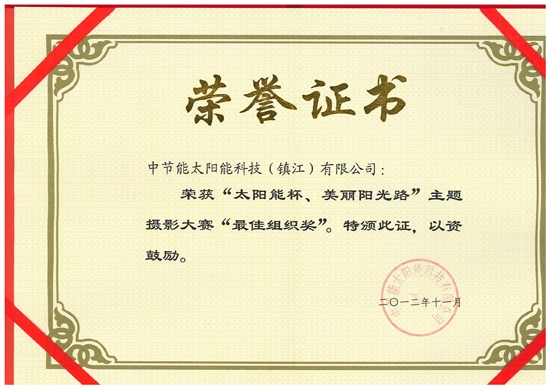 2012 November solar company solar cup, beautiful sunshine road "theme photography contest" best organization award"