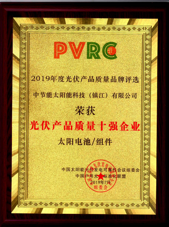 The Seminar on the Reliability of Chinese Solar Photovoltaic Power Generation?(PVRC),?sponsored by Chinese Renewable Energy Society, was grandly held in Suzhou from July 20 to 21. Leveraging the efficient and reliable solar cell and PV module, CECEP Solar Energy Technology (Zhenjiang) Co., Ltd. (hereinafter referred to as “Zhenjiang Company”) was granted the honorary title of “2019 Top 10 Enterprises in Photovoltaic Product Quality”.