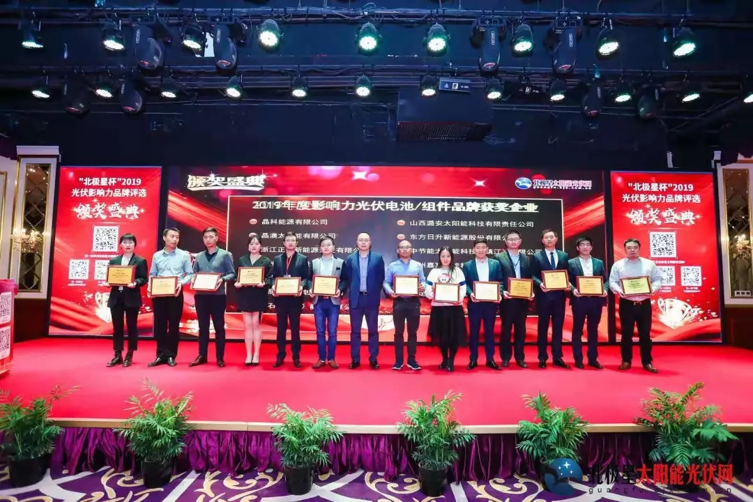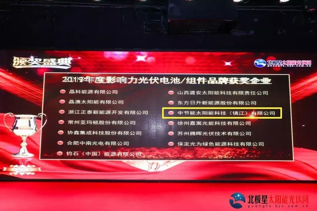 On October 24, 2019, the Award Ceremony of “North Star Cup”?2019 PV?Influential Brand Selection reached a complete success in Beijing. More than one hundred guests including relevant experts of the PV industry and representatives from outstanding enterprises engaging in all links along the PV industry chain gathered at this event to witness the glorious moments. CECEP Solar Energy Technology (Zhenjiang) Co., Ltd. (hereinafter referred to as “Zhenjiang Company”) was invited to attend as a sponsor, and won two awards of “2019 Annual Brand of Influential PV Cell/Module”?and “2019 Annual Innovative PV Enterprise of Influence”.